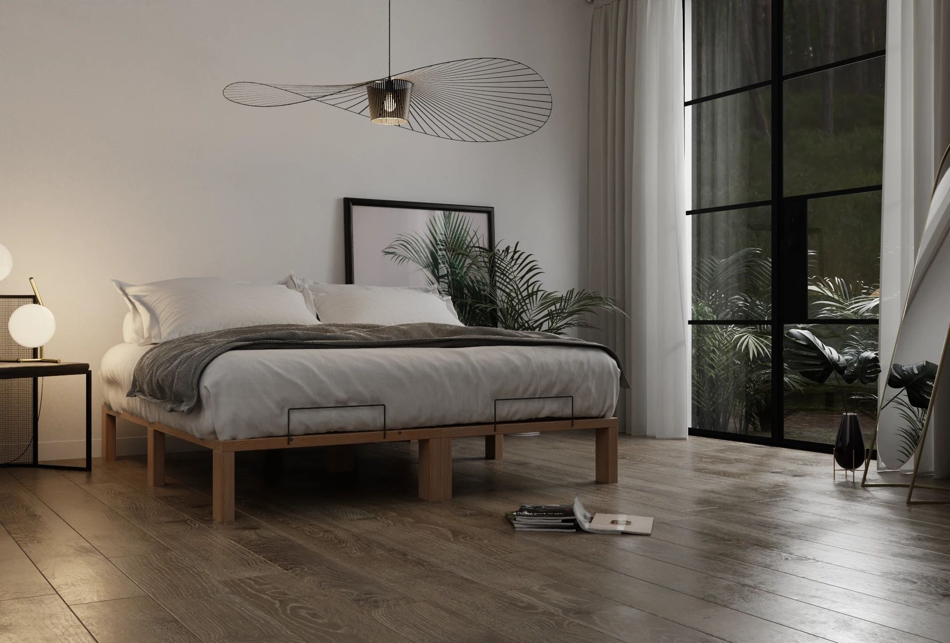 • Platzsparend: Die Breite entspricht der gewählten Liegebreite. Standardlänge mit beiden Matratzenbügeln sind nur 201,5 cm. Durch die 25 cm hohen Füße viel Stauraum unter dem Bett. Gesamthöhe 29 cm.
