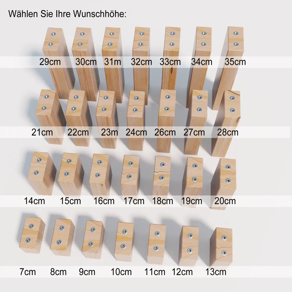 Wenn es auf jeden Zentimeter ankommt, kürzen wir die Möbelfüße auf Ihre Wunschhöhe von 7 bis 35 cm.