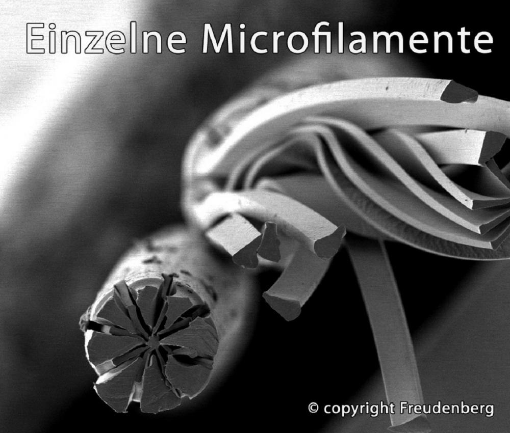 Das EVOLON-Material besteht aus extrem feinen Mikrofilamenten(70% Polyester, 30% Polyamid, 100gr/m²).